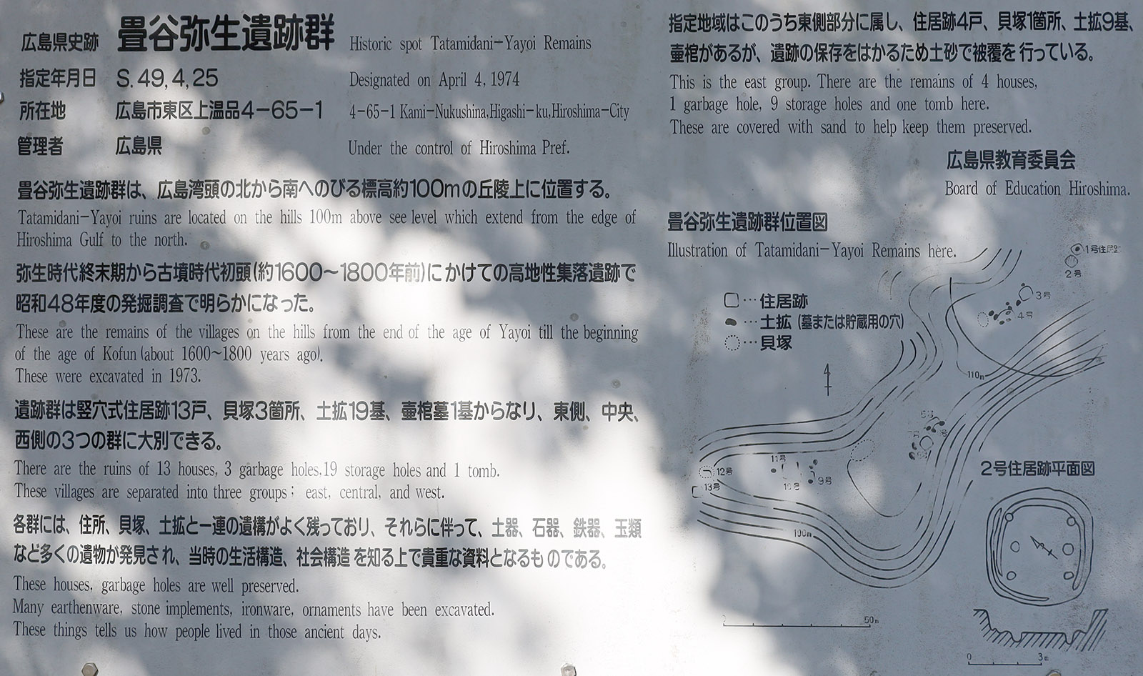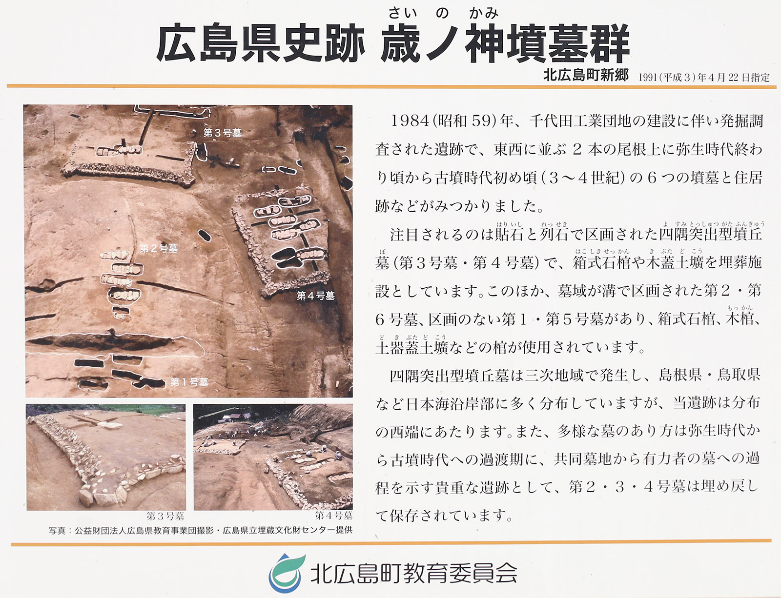 2号墓は、溝によって墓域を区画した墳墓で、3・4号墓はよすみ。それ以外にも区画を設けていない墳墓もある。本遺跡のよすみは、安芸では貴重なもので、稲山墳墓と共によすみの分布域の南西限に位置している。