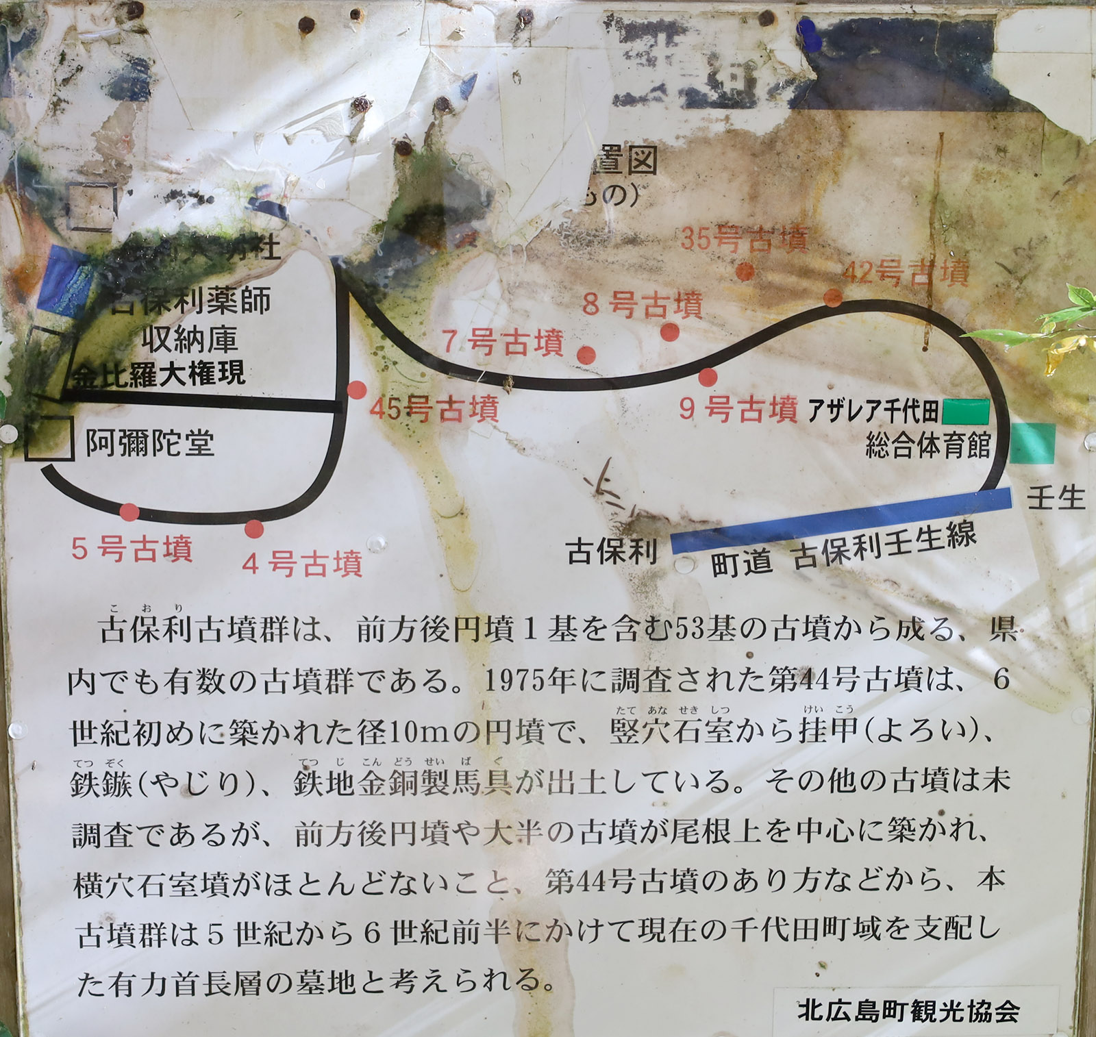 ウェルカム度が非常に高い古墳で好感が持てるが、墳丘上には、まるで大規模な発掘調査が行われているかのようにブルーシートが広範囲に敷かれ、景観を大きく損ねているのが残念。発掘調査の途中で予算が尽きたか?