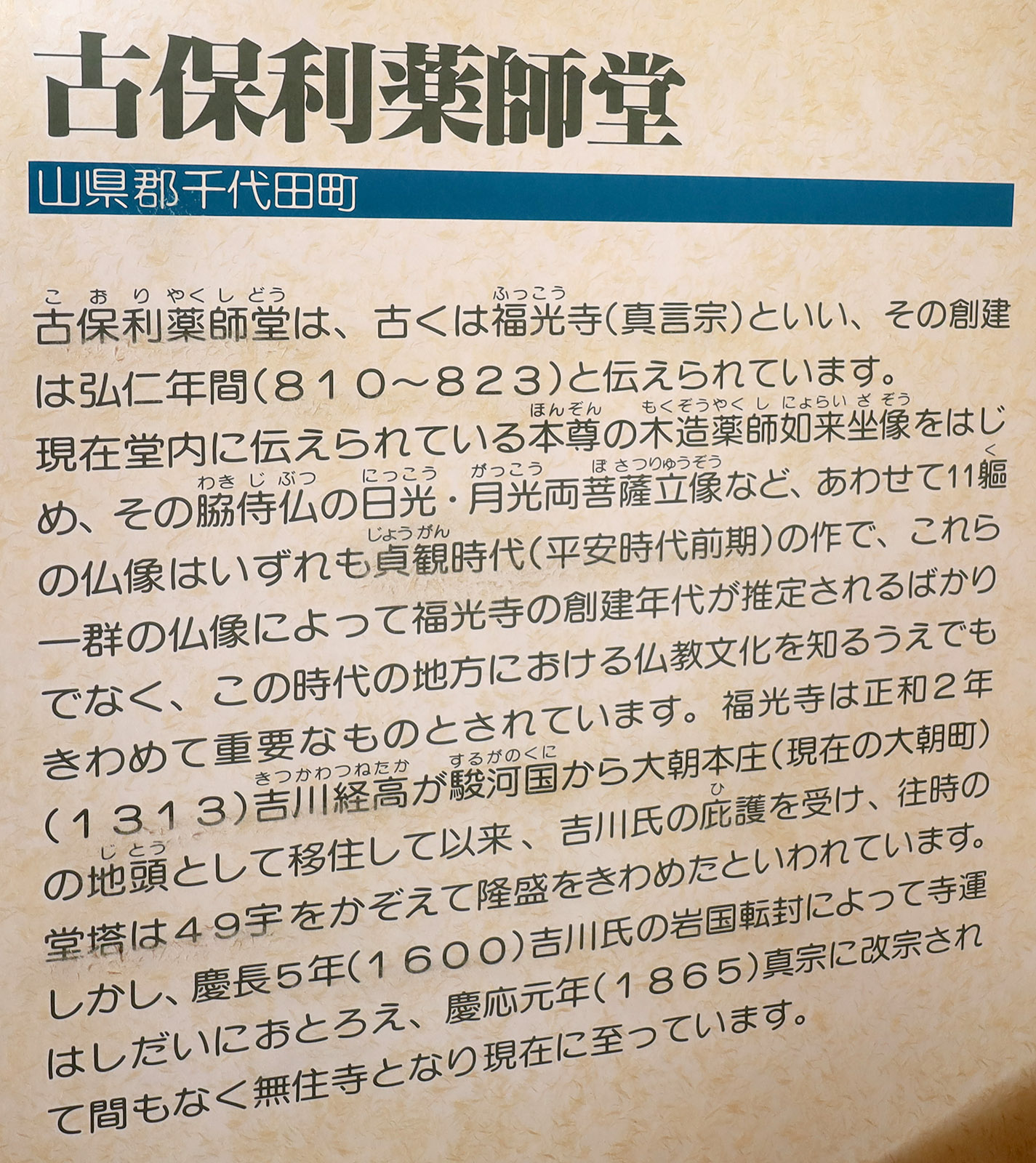 千代田歴史民俗資料館・古保利薬師収蔵庫(小保利薬師堂・福光廃寺跡)