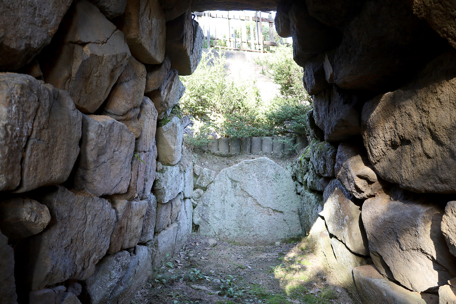 6世紀中頃に築造された径10.4mの円墳。元々小さいのに封土は極限まで削られているが、ちゃんと円墳の形をしている。その小さな墳丘に、人が立って入れるほどの横穴式石室が開口しており、いじらしい感じがする。
