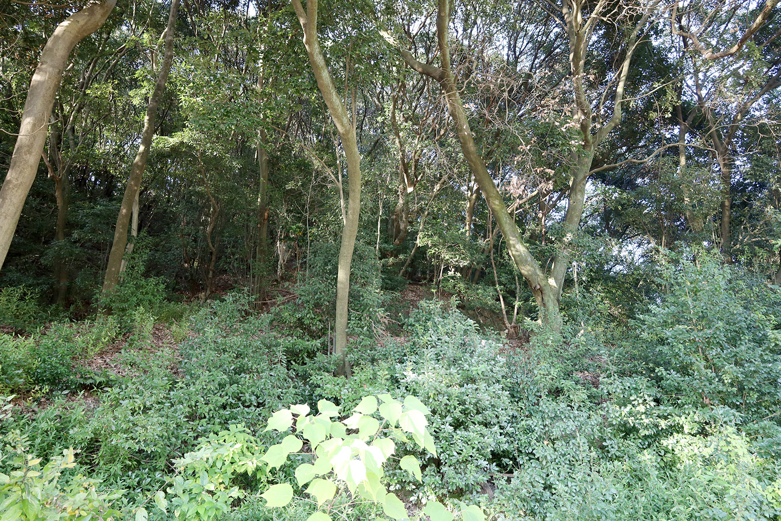風土記の丘ミュージアムを出て山を登って行くと、最初は七ツ塚古墳群に入る。七ツ塚古墳群には、前方後円墳1基、帆立貝形古墳2基、円墳55基、方墳2基の合計60基がある(みよし風土記の丘リーフレットによる)。