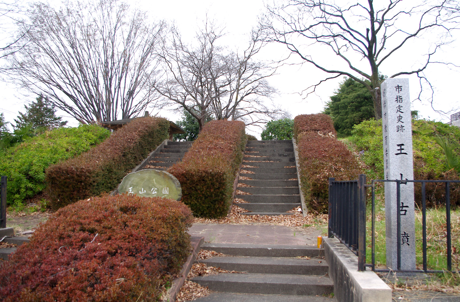 関東における初期の横穴式石室を備えた古墳。石室の長さは16.4mもあり関東最長級。見学はできませんが、墳丘表面の表示で石室の大きさが分かります。その異様な形状に驚くと思います。また、積石塚の一種ともいわれています。