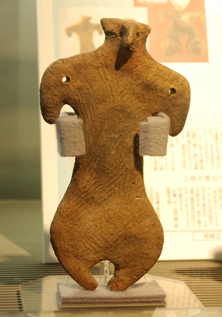元々の形はイメージしづらいと思いますが、下の展示パネルにも類例の写真が載っていますし、例えば北海道江別市の大麻3遺跡から出土したペア土偶も似た形状です。