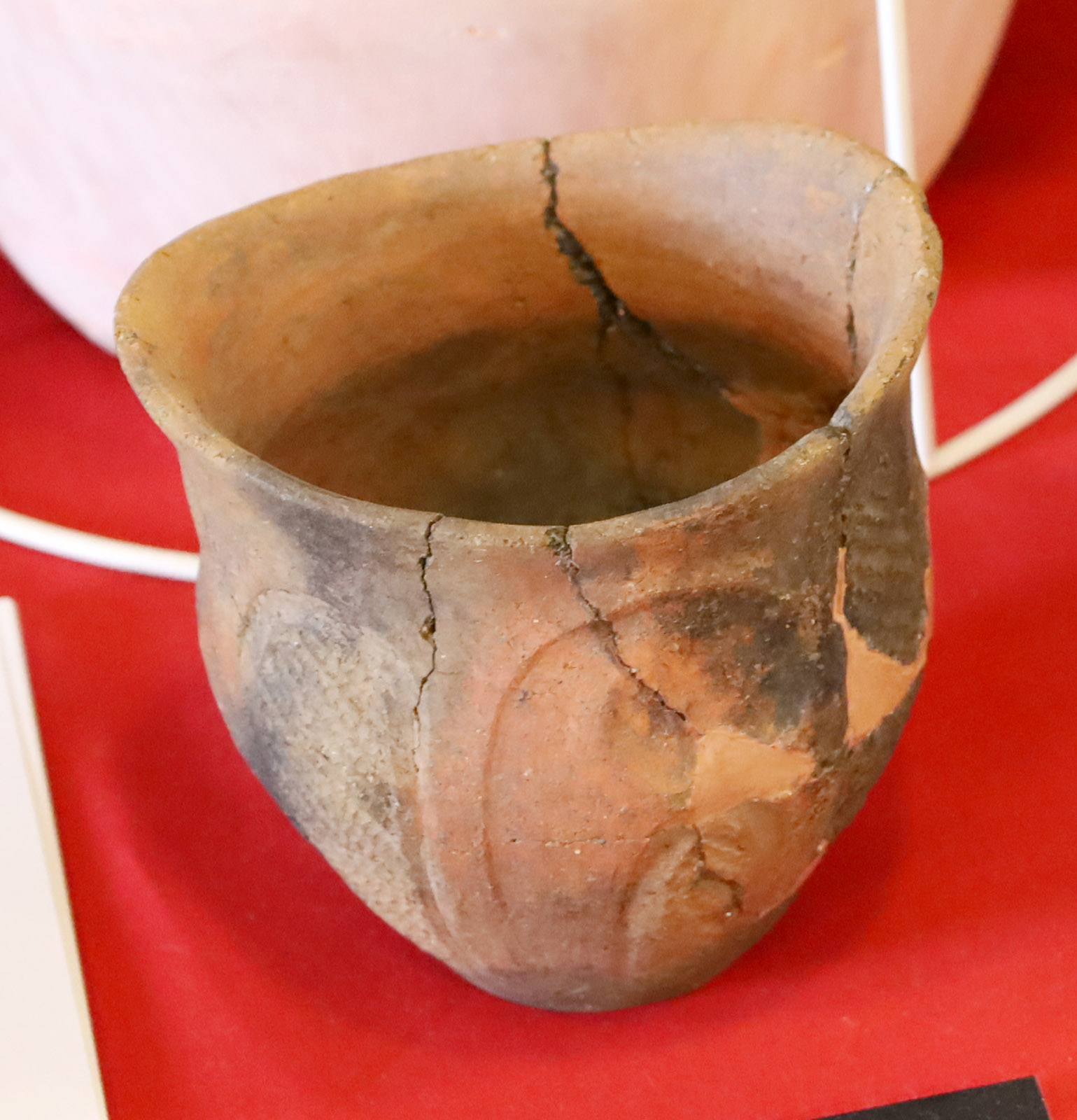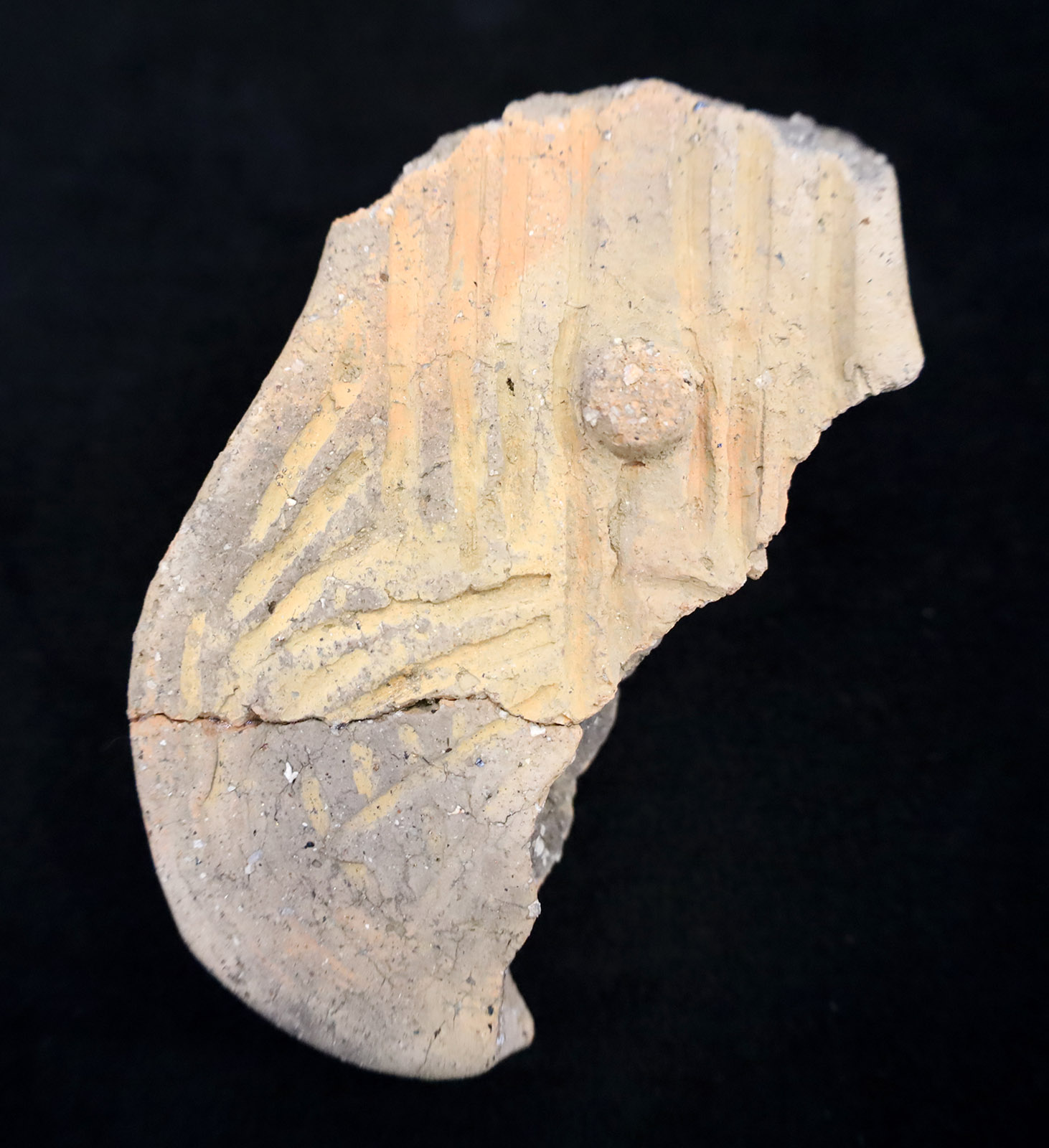 縄文時代後期以降は、特別な時用の精製土器と普段使い用の粗製土器が分けて造られるようになりますが、これは普段使い用でしょう。良く見ると紋様の付け方が意外と不規則。