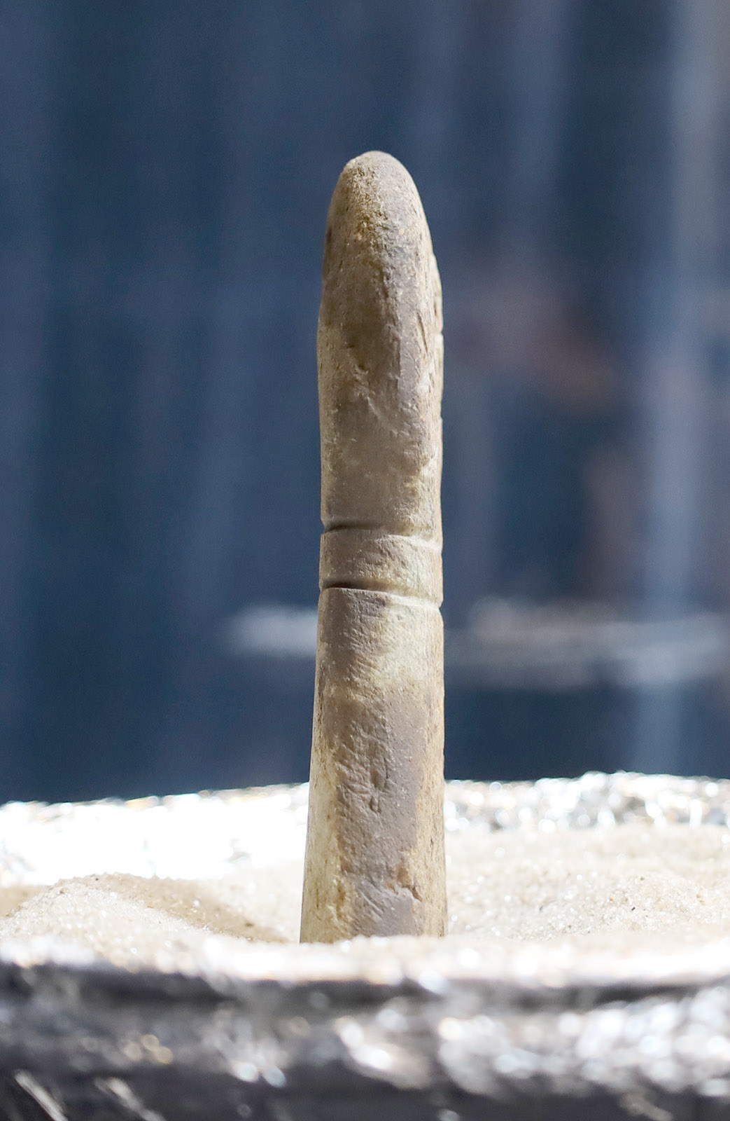 ところで、2年前に来たときは、大畑遺跡で表採された謎の石製品が展示されていました。