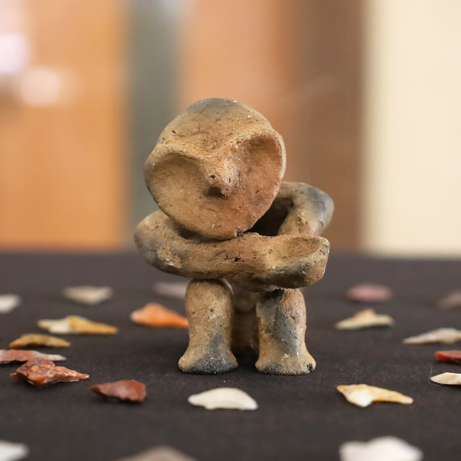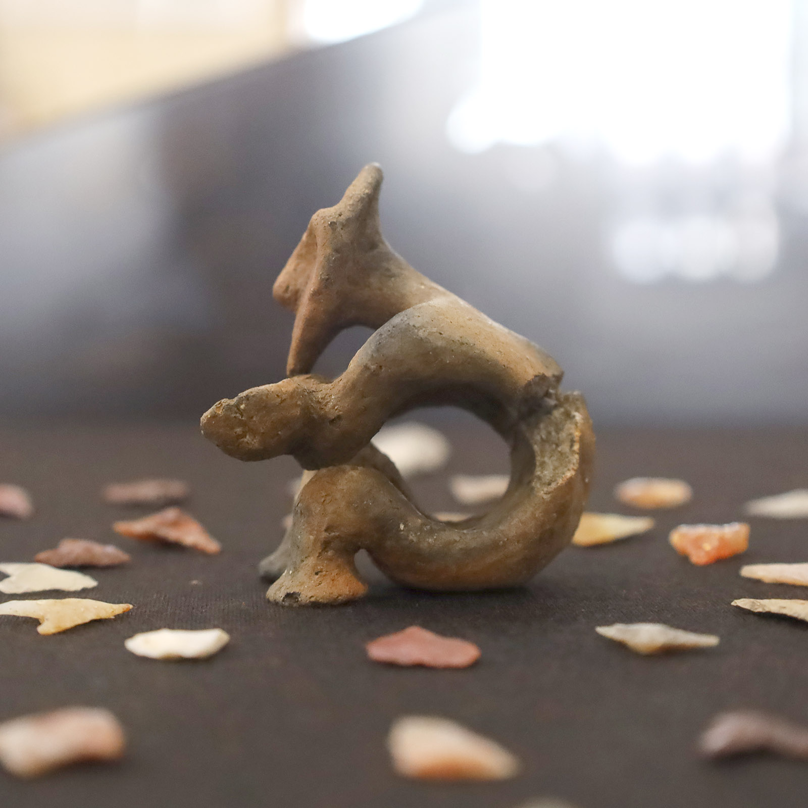 大麻3遺跡出土のペア土偶その1(江別市郷土資料館にて2021年8月3日撮影)