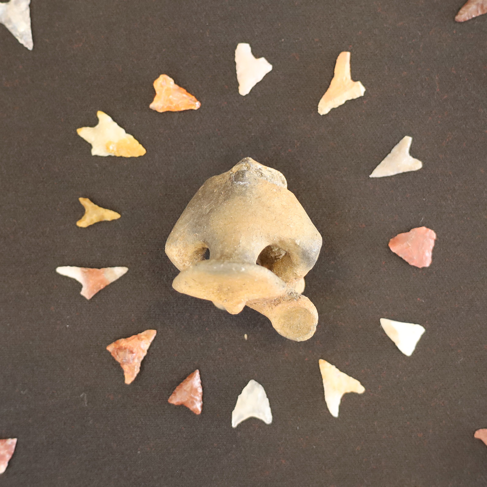 ちなみに、ドキ土器館のスター土偶である「たそがれ土偶」は、自身のケースを持っているので、今日もその中にいました。しかも、今日は石鏃に囲まれて賑やかな装いです。