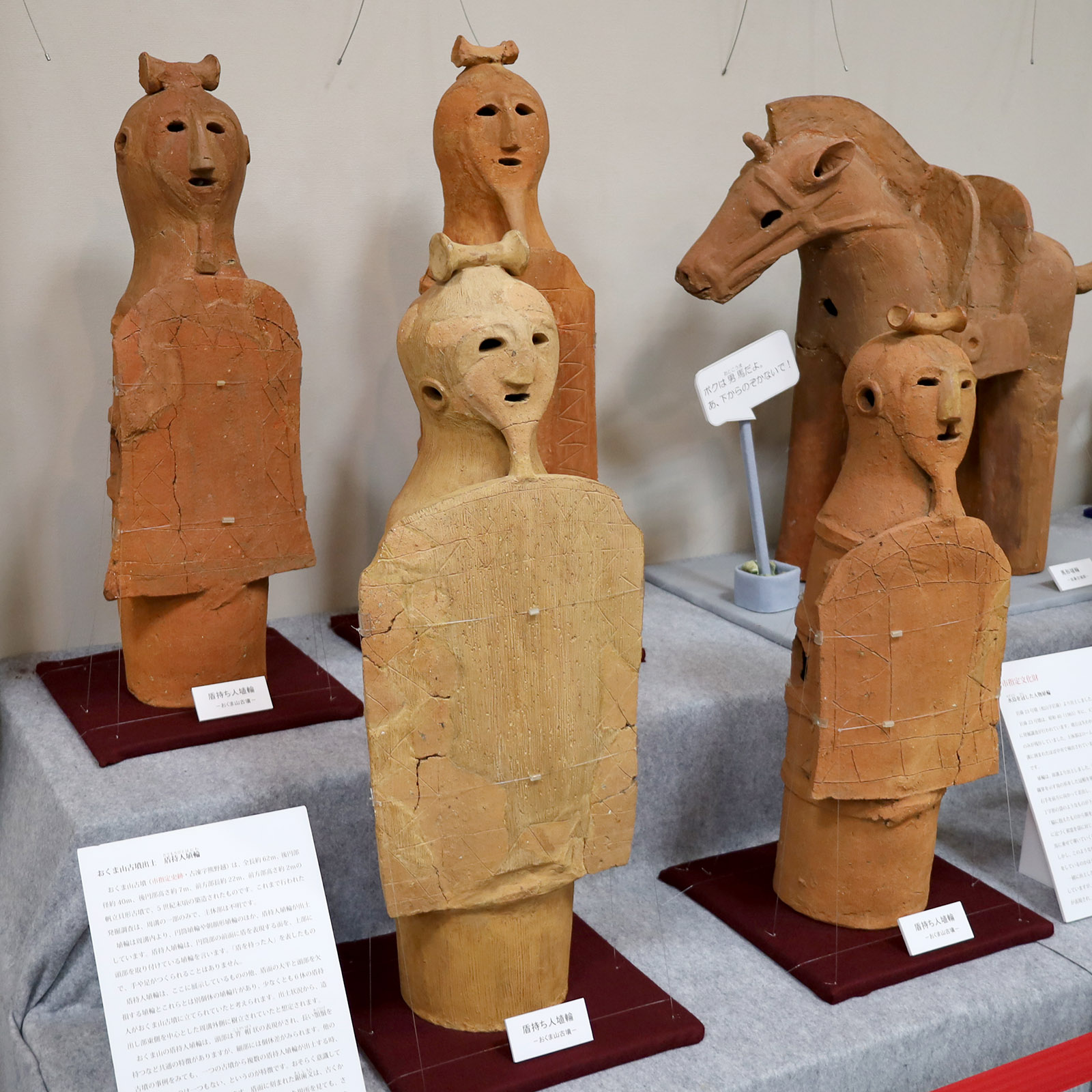 この盾持人埴輪は、東松山市埋蔵文化財センターに展示しています。