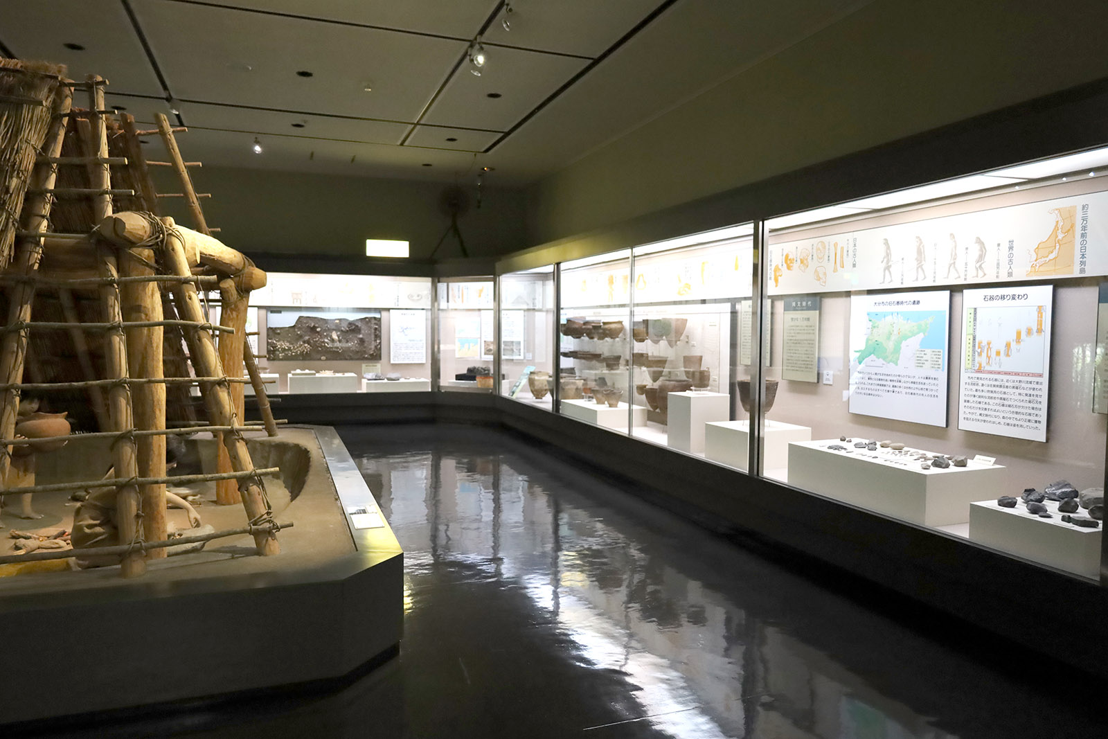 日田市内の遺跡から出土した考古遺物が展示してある。小迫辻原遺跡についてはジオラマと共に解説している。