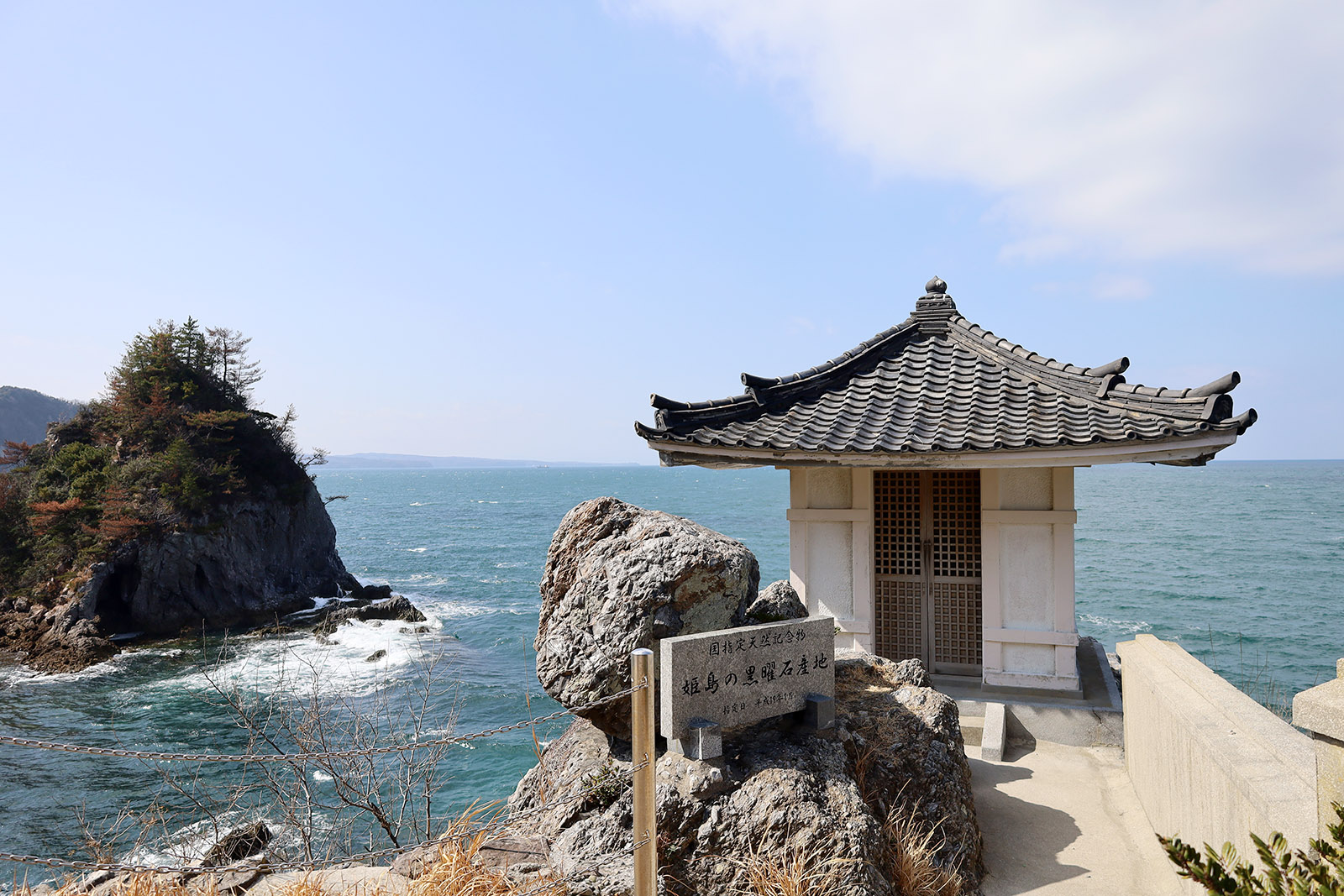 遺跡という遺跡はないが、石器好きなら堪らない黒曜石の露頭があり、姫島の独特なグレーの黒曜石を見ることができる。このようにジオ的にもとても面白い場所だし、日本書紀の垂仁紀に記載のある都怒我阿羅斯等(つぬがのあらしと)渡来伝説の地であるので、地質好きのみならず歴史好きの人も行ってみることをお勧めする。島に着いたらまずは「時と自然の希跡ジオパーク 天一根」を訪れて情報収集をしよう。