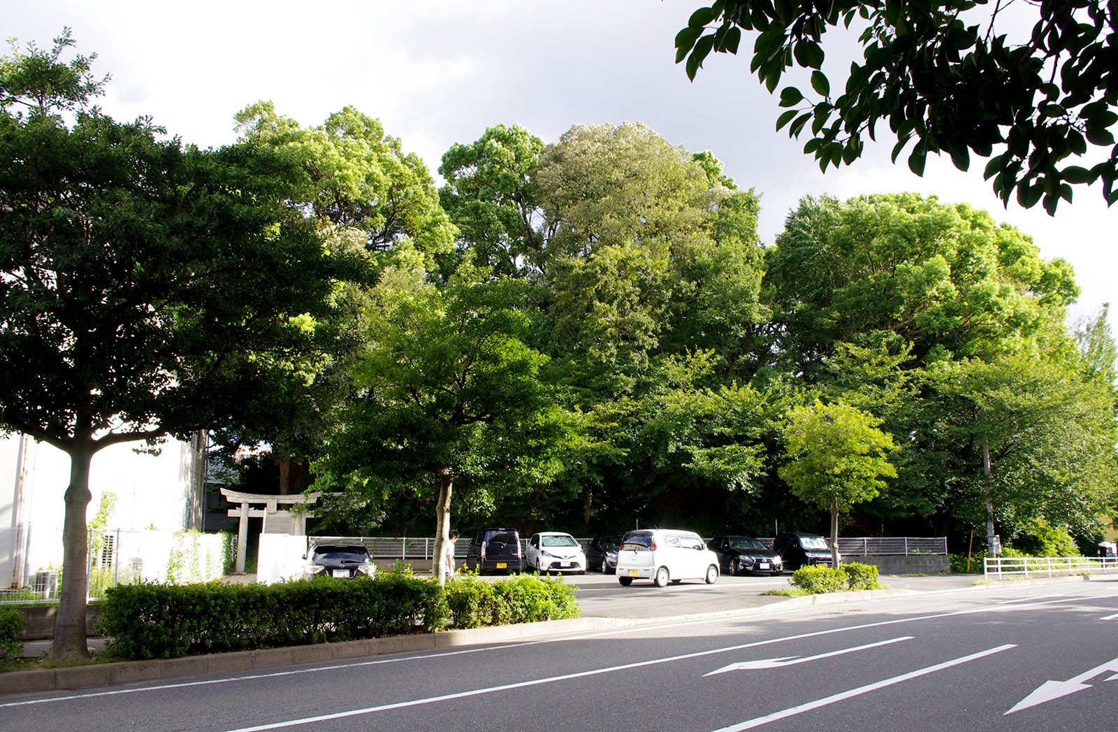 歩き出して5分ほどで前方左手にこんもりとした森が見えてきました。