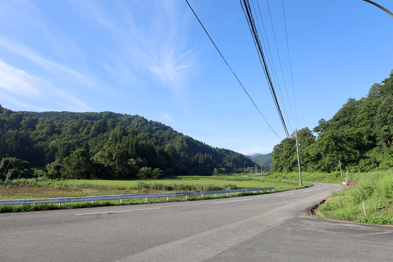 現地は、米沢駅から西へ50分ほど車を走らせた場所にあって、途中峠越えもあって、旧石器時代の遺跡にありがちな山深い自然豊かな場所です。下の写真の正面の森が平成の発掘調査現場で、説明板の姿が見えるのですが、周囲はすべて急崖で、そこにたどり着くことはできません。