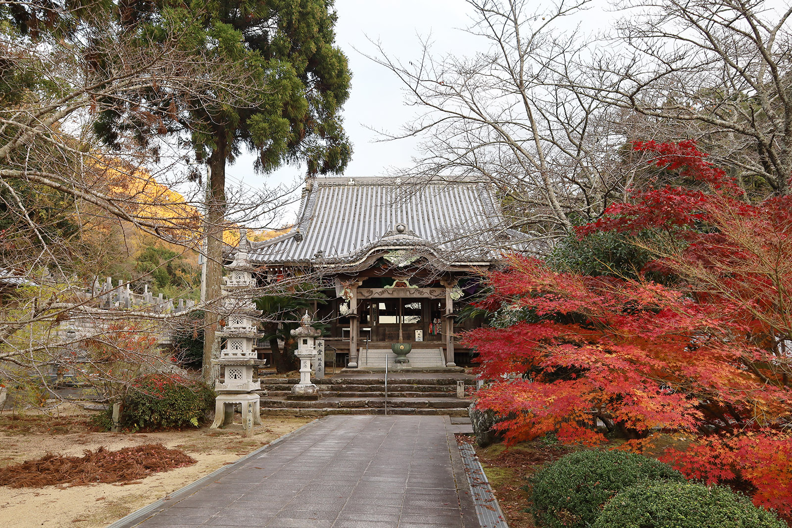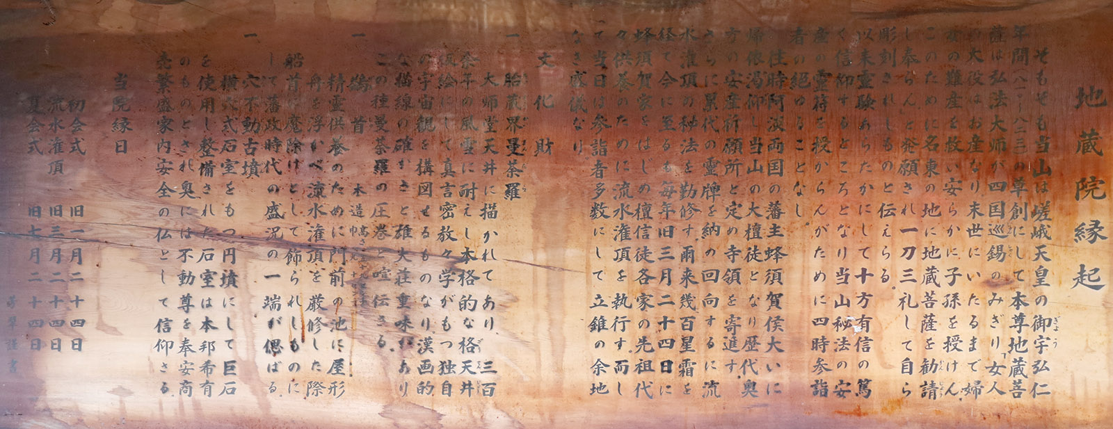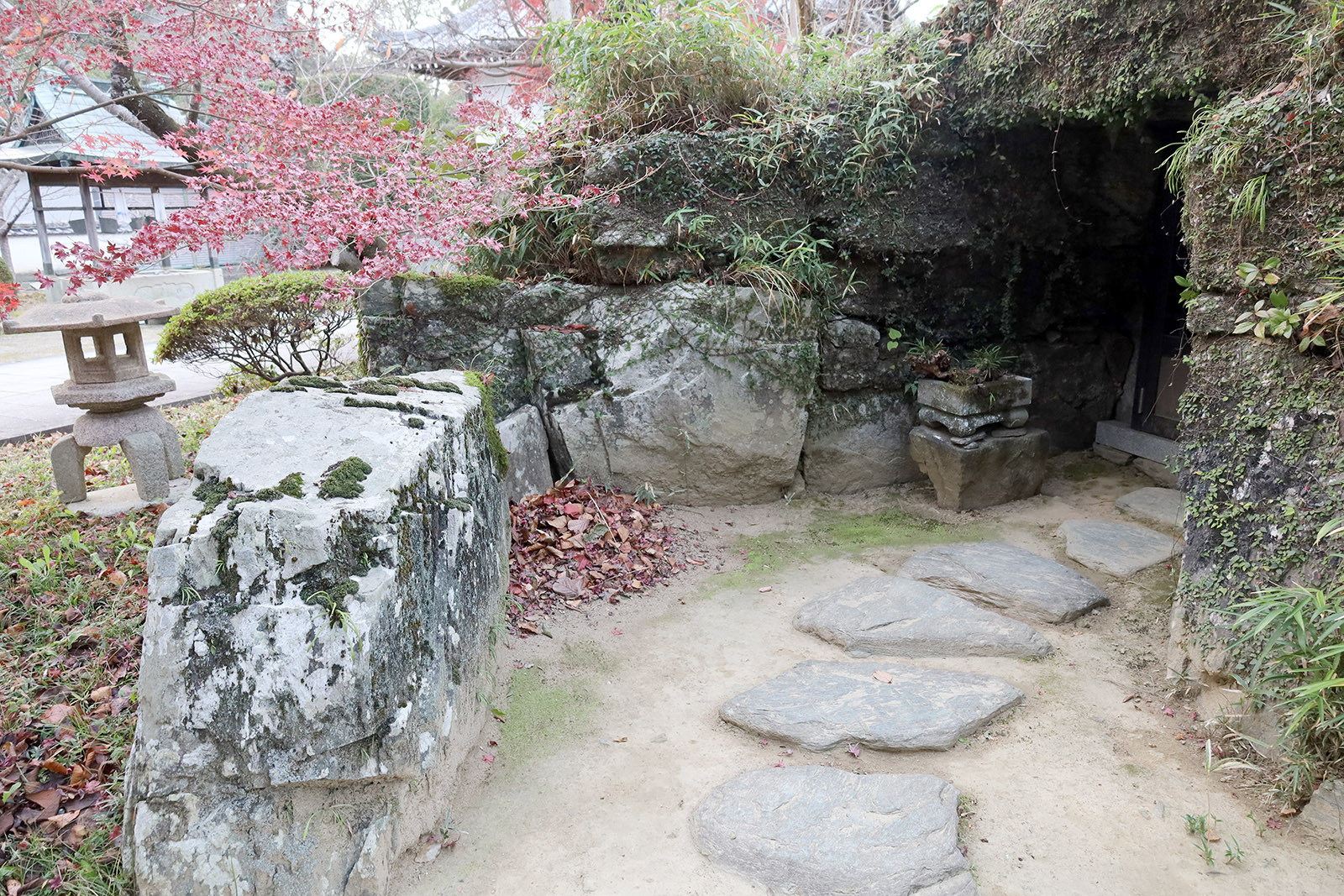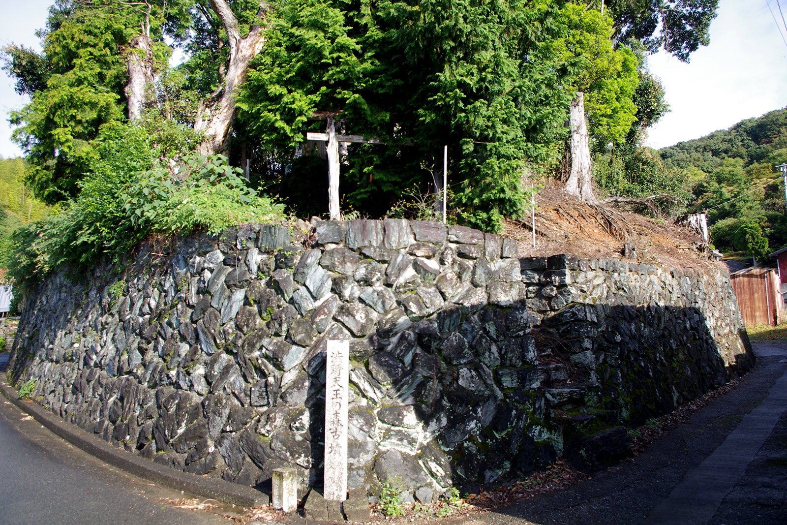 「祝国指定史跡」の大きな看板に遭遇したら、そこからは阿波遍路道を徒歩で向かう。20分ほど歩くと説明板の場所にたどり着く。実際の遺跡は説明板から川を挟んだ対岸。