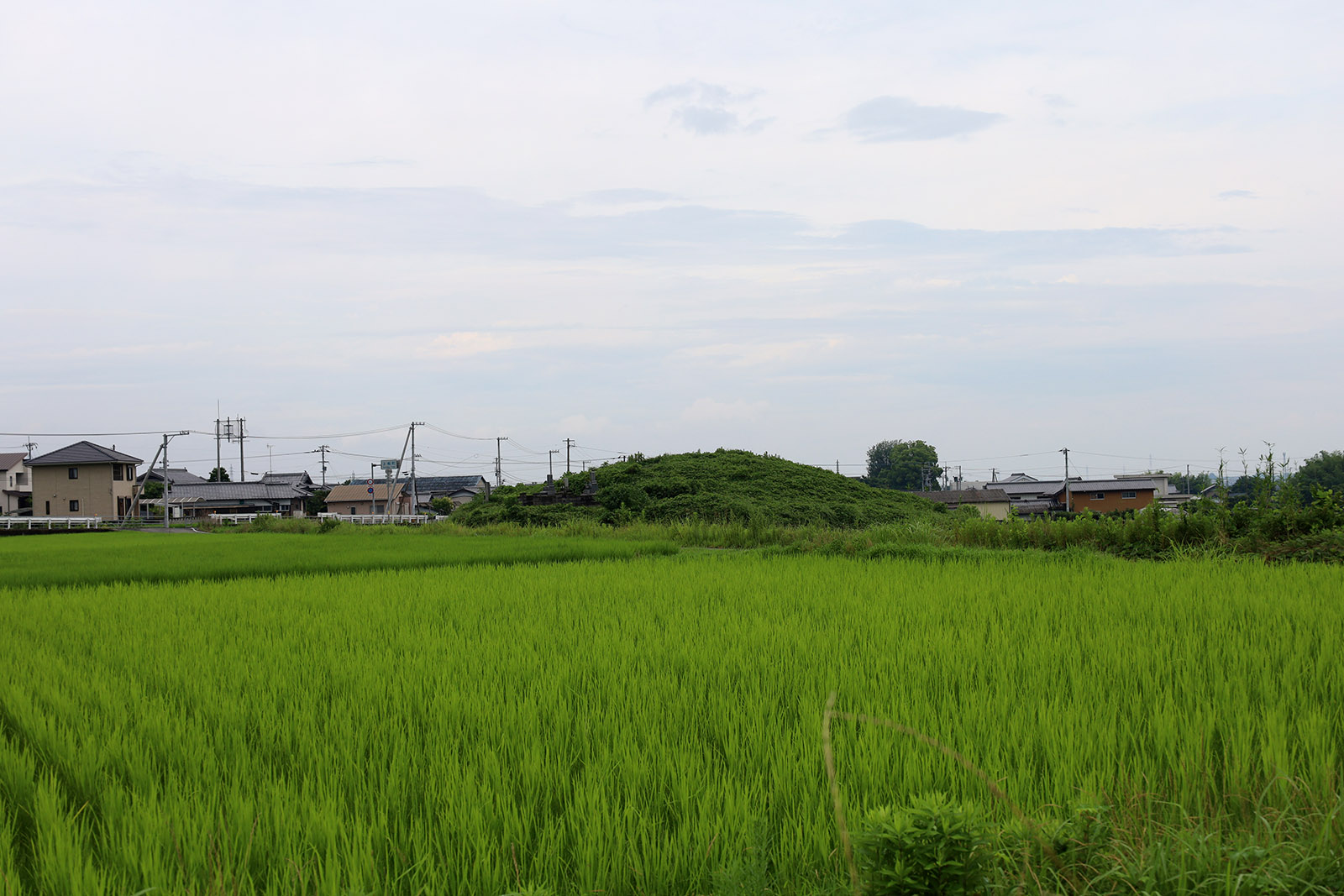 渋野丸山古墳から見て八幡神社の向こう側にある。