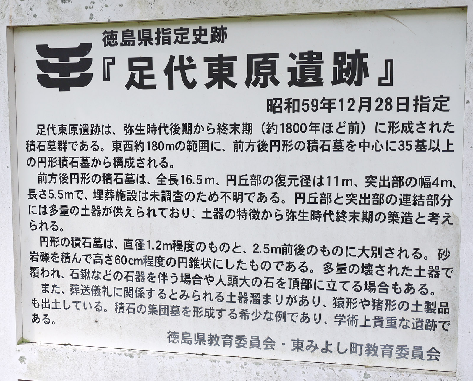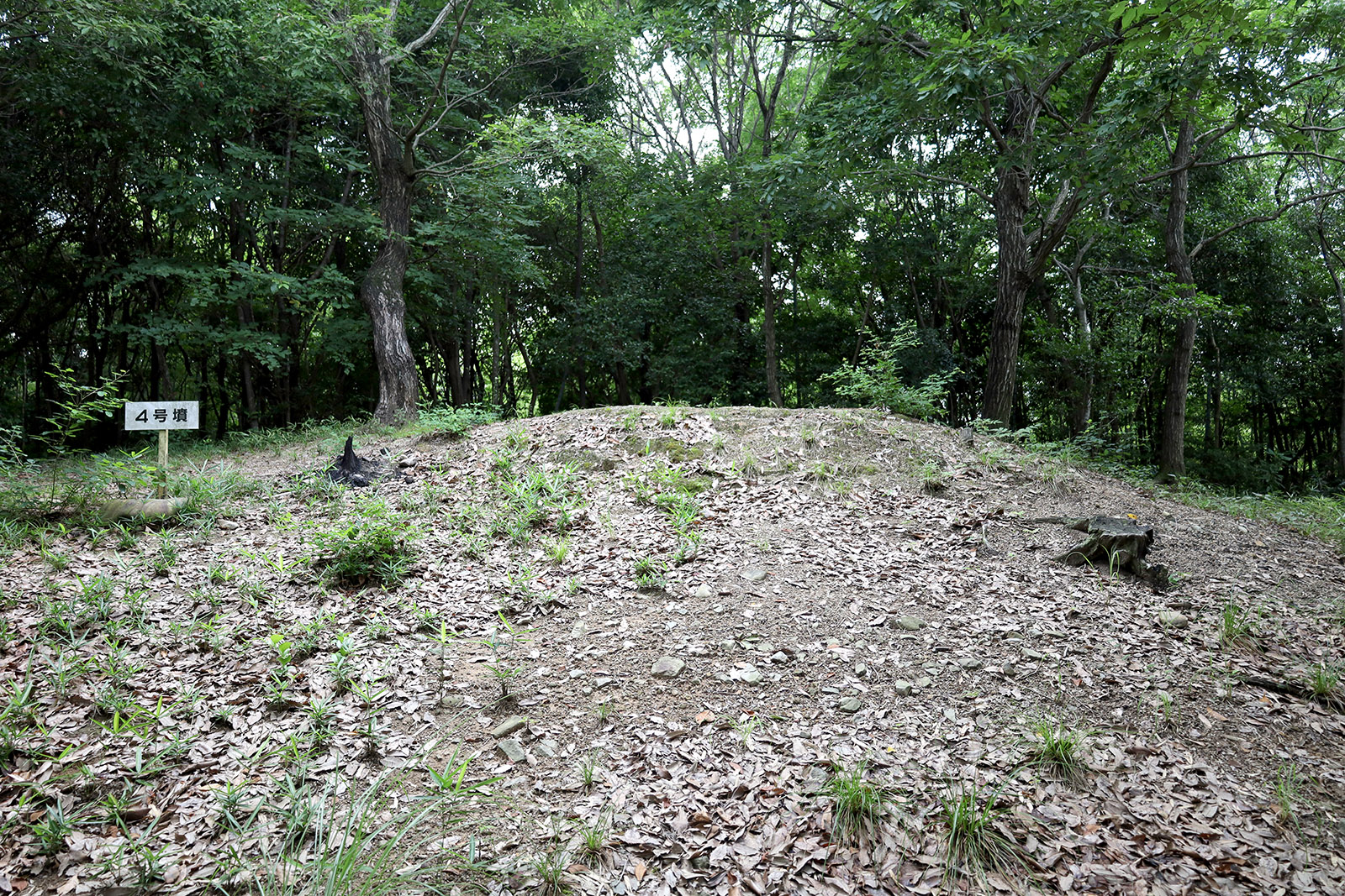 弥生時代後期から終末期の積石墓群。終末期に築造された前方後円形のものが1基あり、円形のものも35基以上ある。