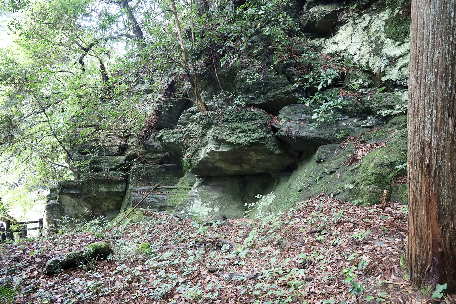 縄文時代の岩陰遺跡。新田神社の南側に所在。昭和44年、偶然土器片などが発見され、炉跡もあったことから住居跡と考えられている。5か所ある岩陰のうち、1号、2号、5号岩陰は同志社大学などが調査をし、県史跡に指定されている。早期から晩期までの土器が出土。