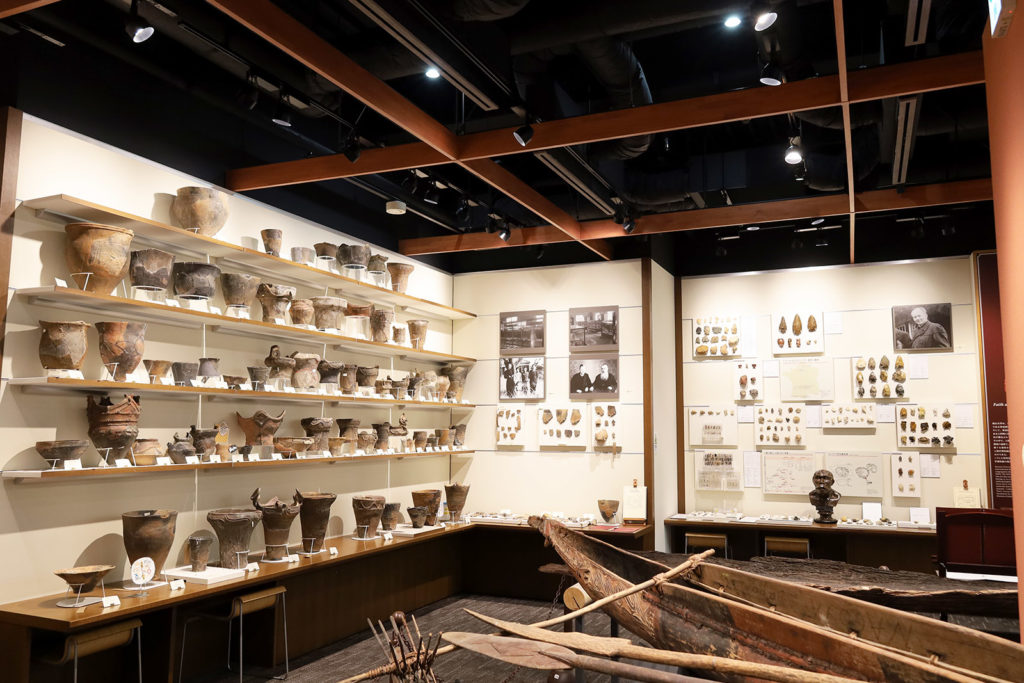人類学博物館という名前ですが、考古学博物館としても立派です。特徴としては、展示物のほとんどを触ることができることで、石器の手触りや、土器の重さなどを実際に体感できます。国内ではなかなか見ることのできないアフリカやユーラシア大陸の前期・中期旧石器の展示も素晴らしい。縄文、弥生の展示も充実しており、縄文土器に関してはAICTメンバーにお馴染みの関東の遺跡から出たものが多いです。